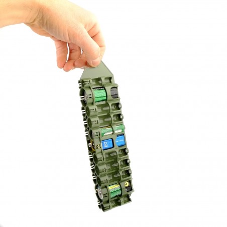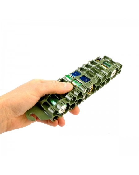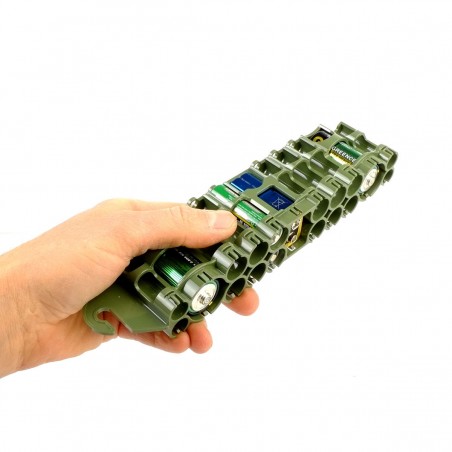 Aby wyjąć baterię wystarczy wypchnąć ją z pojemnika. W przeciwieństwie do zwykłych pudełek każdą baterię wyjmuje się pojedynczo dzięki czemu możemy łatwo wymienić baterie zużyte na świeże bez ryzyka wymieszania ich.